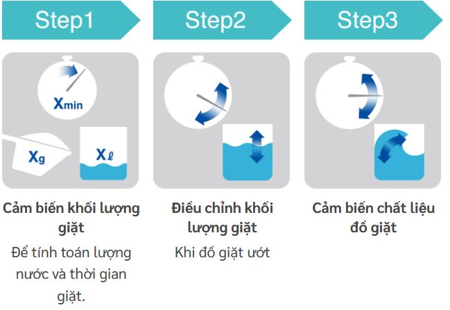 Khối lượng giặt và chất liệu đồ giặt sẽ được xác định qua 3 bước cảm biến để tối ưu hóa chương trình giặt. Kết quả là quá trình cảm biến sẽ chính xác để đảm bảo không có sự lãng phí về thời gian, điện năng cũng như nước tiêu thụ. .JPG)
