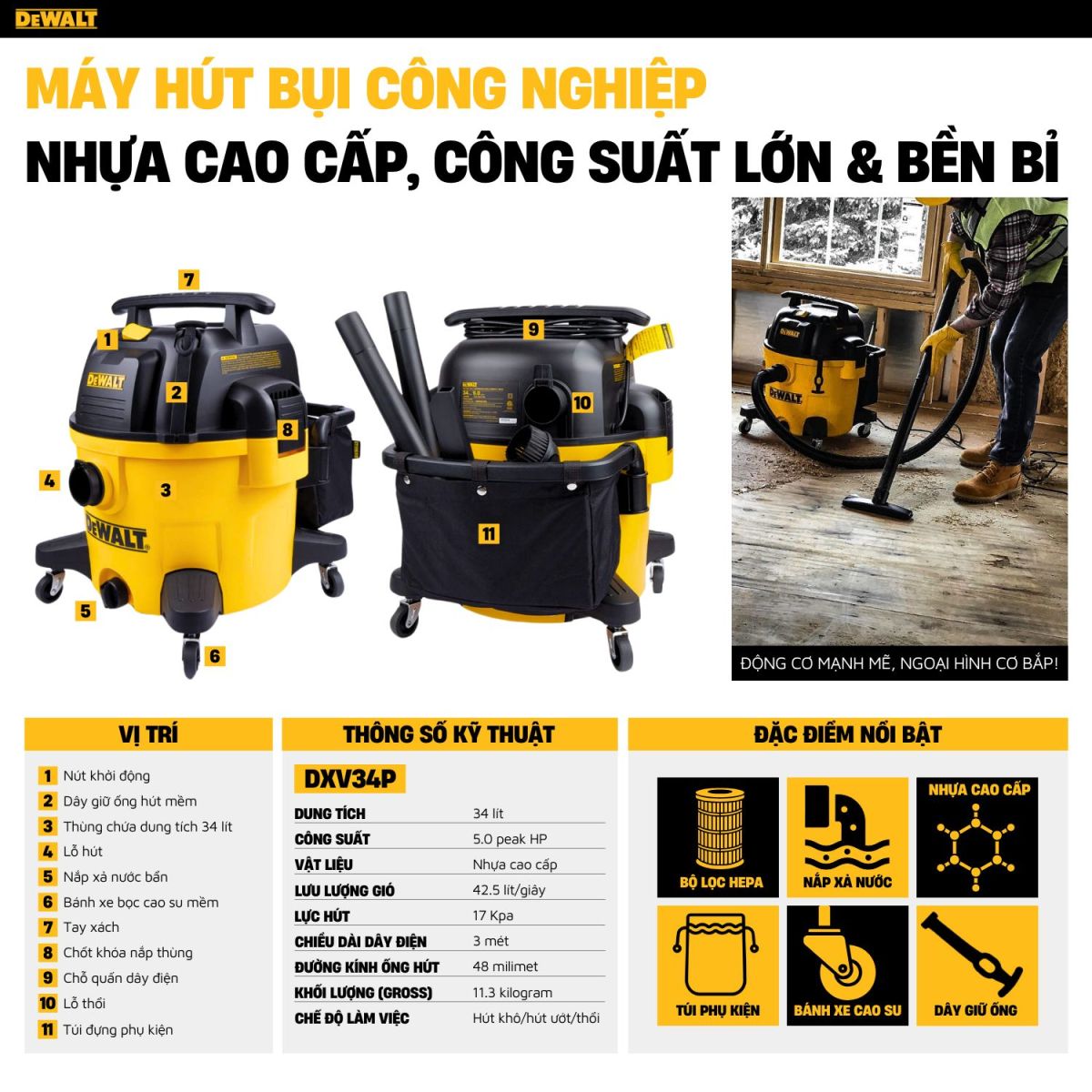 Máy hút bụi 3 chức năng khô và ướt DeWalt DXV34P