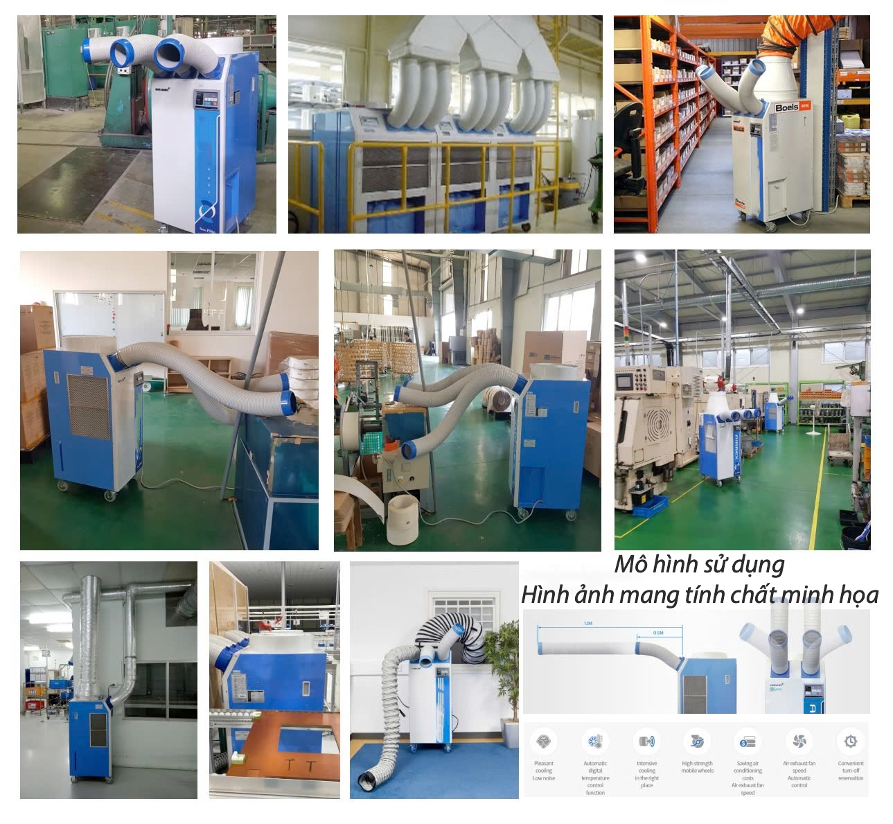 - Sử dụng trong nhiều không gian khác nhau: Điều hòa di động Kyungjin được sử dụng trong nhiều không gian rộng hoặc chật hẹp khác nhau nhờ vào chế độ làm mát một điểm. Bên cạnh đó các option được cài đặt sẵn phù hợp với đặc thù từng không gian ví như có thể làm mát cho công nhân, làm nguội sản phẩm hoặc máy móc trong các nhà máy sản xuất, sử dụng trong các đại sảnh khách sạn, bệnh viện, nhà hàng...