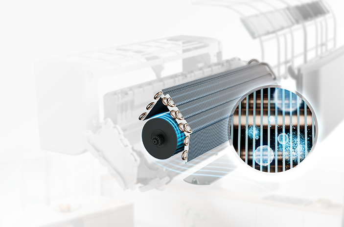 Bộ lọc trước (pre-filter), bộ lọc không khí (air-purifying filter) và chức năng làm sạch dàn trao đổi nhiệt (heat exchanger cleaner) hoạt động đồng bộ với hiệu quả lên đến 99,9% đối với các loại virus và loại bỏ 99% vi khuẩn.