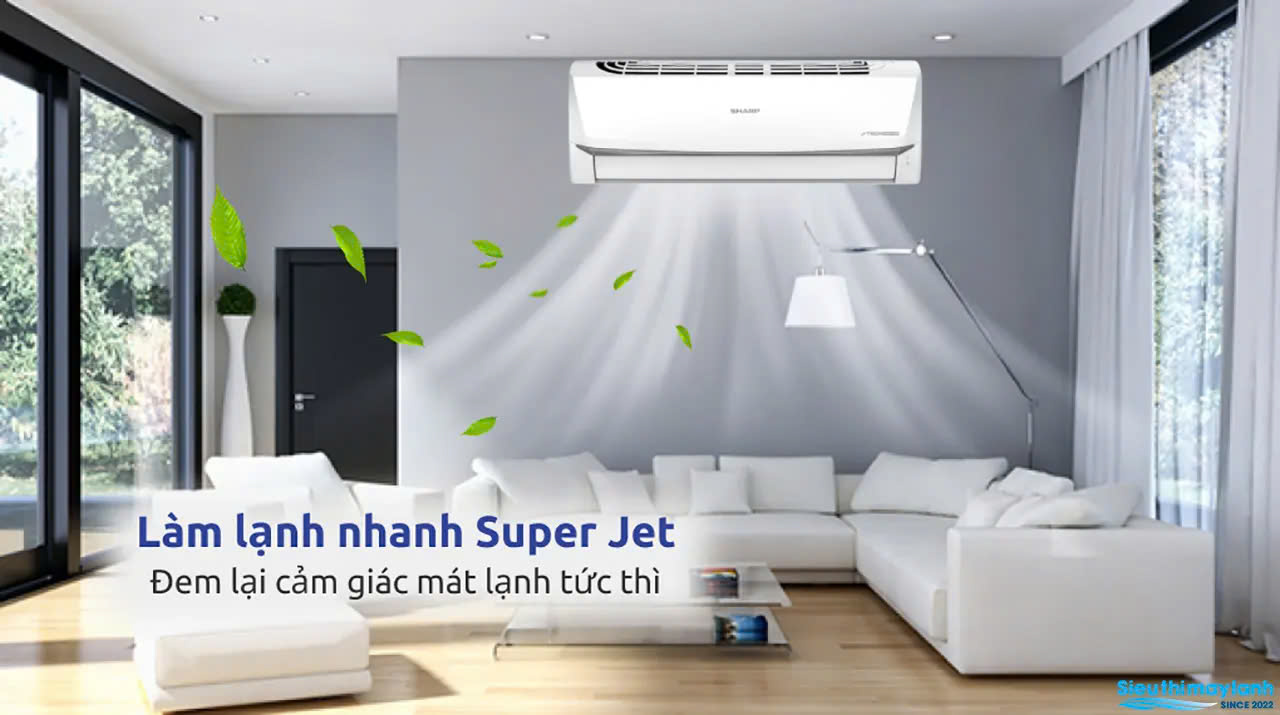 Máy lạnh Sharp Inverter 2 HP AH-X18ZEW có chế độ làm lạnh nhanh SuperJet có khả năng làm giảm đến 5°C chỉ trong vòng 5 phút. Nhờ đó, bạn nhanh chóng tận hưởng cảm giác mát sảng khoái khi vừa bước vào phòng mà không cần phải chờ đợi lâu với chiếc máy lạnh hiện đại này. .jpg)