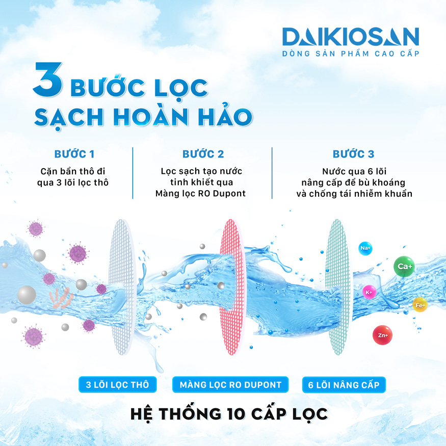 3. Lõi khoáng đá Daikiosan: Giúp máy lọc nước X-Guard RO nóng nguội lạnh in 2D Daikiosan DSW-32710M bổ sung khoáng chất Silic - một loại khoáng chất cần thiết rất tốt cho sức khỏe con người.