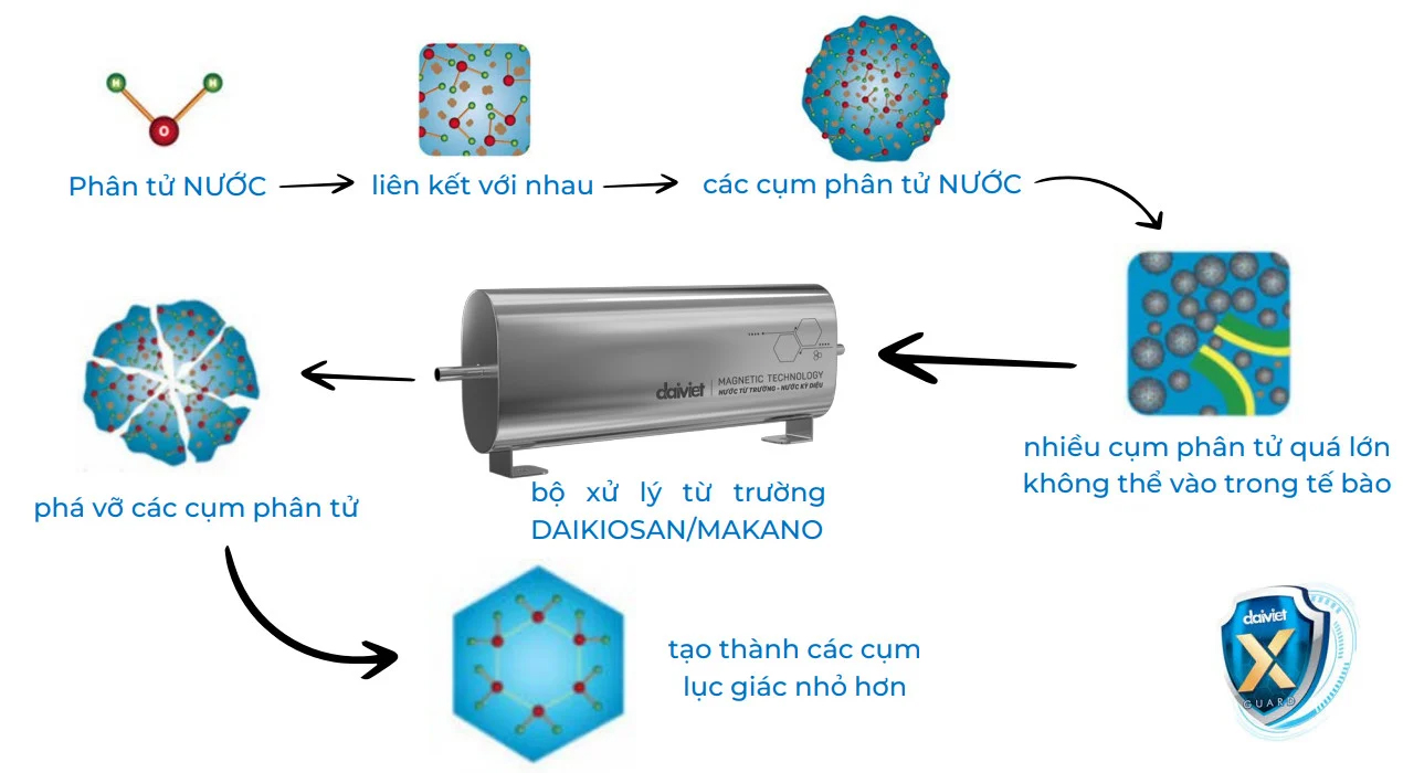 - Lõi tạo điện từ trường - Nước kỳ diệu: Máy lọc nước nóng nguội Daikiosan X-Guard Từ Trường DSW-36211M giúp chuyển hóa cấu trúc nước từ hình bông tuyết qua hình lục giác, hỗ trợ cải thiện khả năng chuyển hóa và hấp thu ở cấp độ tế bào, vì vậy nước vào cơ thể, vào thực phẩm, trà, cà phê ….nhanh hơn giúp qua đó: