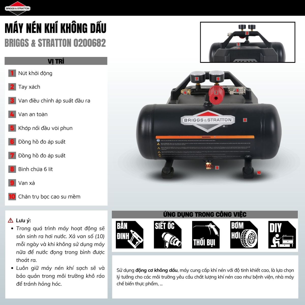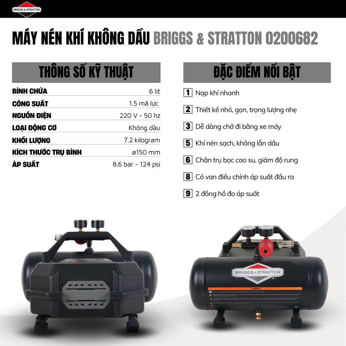 Máy nén khí không dầu 6L BRIGGS & STRATTON 0200682
