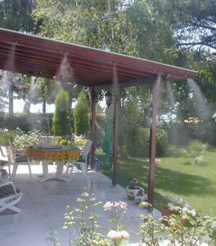 - Để giảm nhiệt độ trong thời tiết quá nắng nóng như hiện nay nên lắp đặt hệ thống phun sương ở trước hiên nhà , cửa trước khi vào nhà ,hoặc những gia đình có sân vườn thì phun sương là một giải pháp tạo không gian thoáng mát.