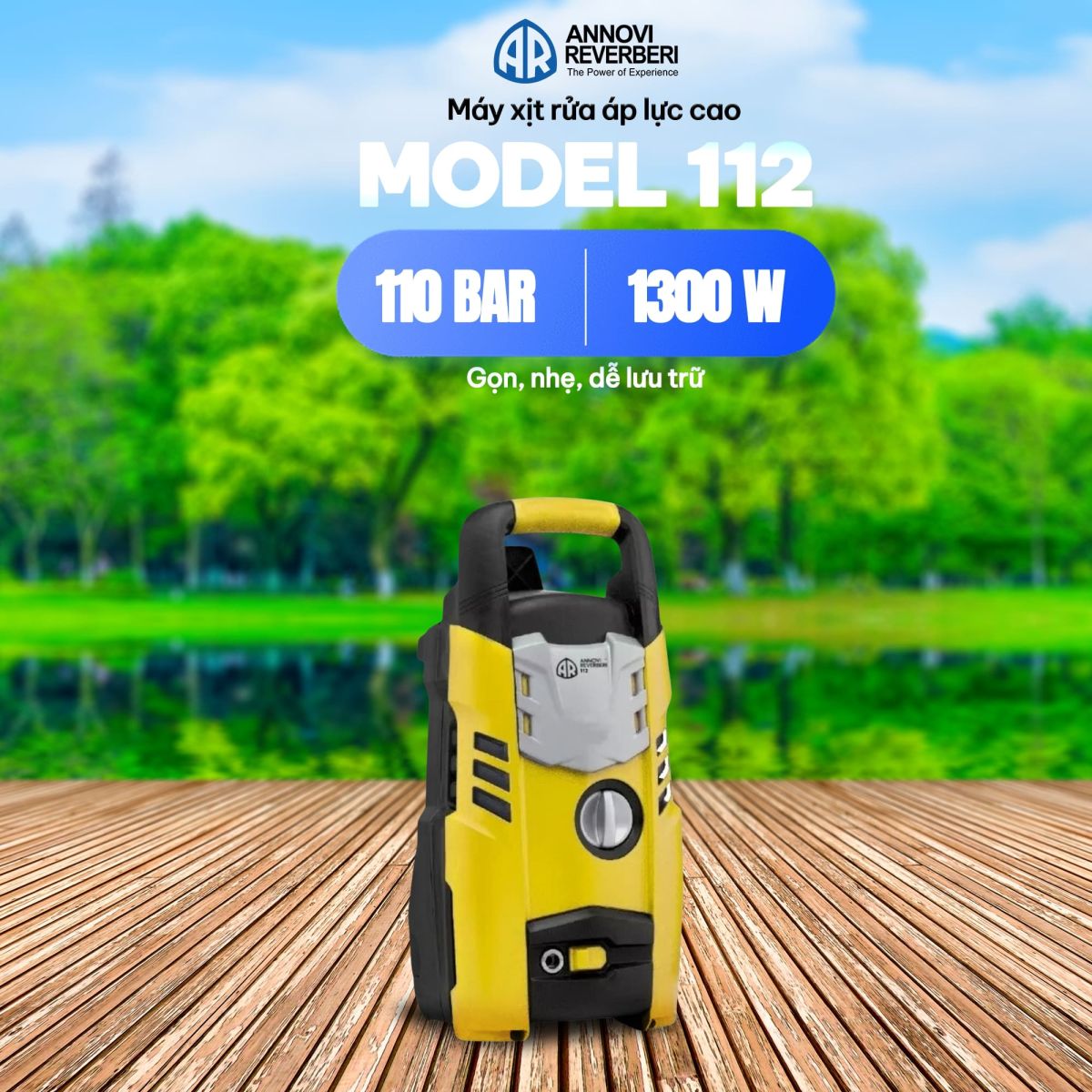 Máy xịt rửa chuyên dụng Annovi Reverberi 112, áp lực cao 110bar, 1300W về thiết kế nhỏ gọn, phù hợp với các công việc DIY ("Do It Yourself"), gia đình.