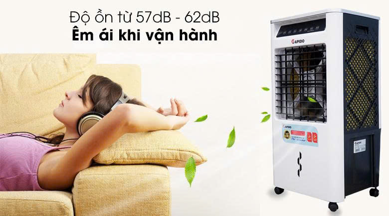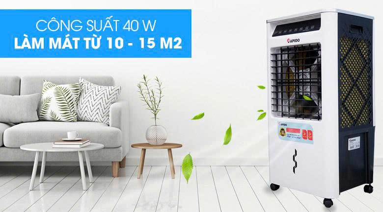 Quạt điều hòa Rapido với công suất hoạt động 40W cho hiệu quả làm mát tốt trên diện tích phòng 10 - 15m2.