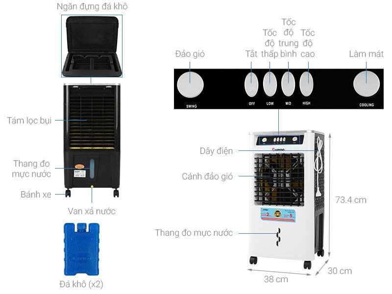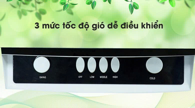 Quạt điều hòa với bảng điều khiển nút nhấn đơn giản, dễ sử dụng ngay từ lần dùng đầu tiên, 3 mức tốc độ gió phục vụ tốt theo nhu cầu và thời điểm sử dụng trong ngày.