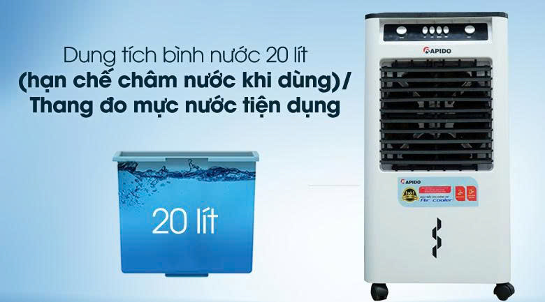 Dung tích bình chứa nước lớn tới 20 lít, sử dụng chế độ làm mát hơi nước liên tục tới 20 tiếng, tiện lợi cho suốt ngày dài.