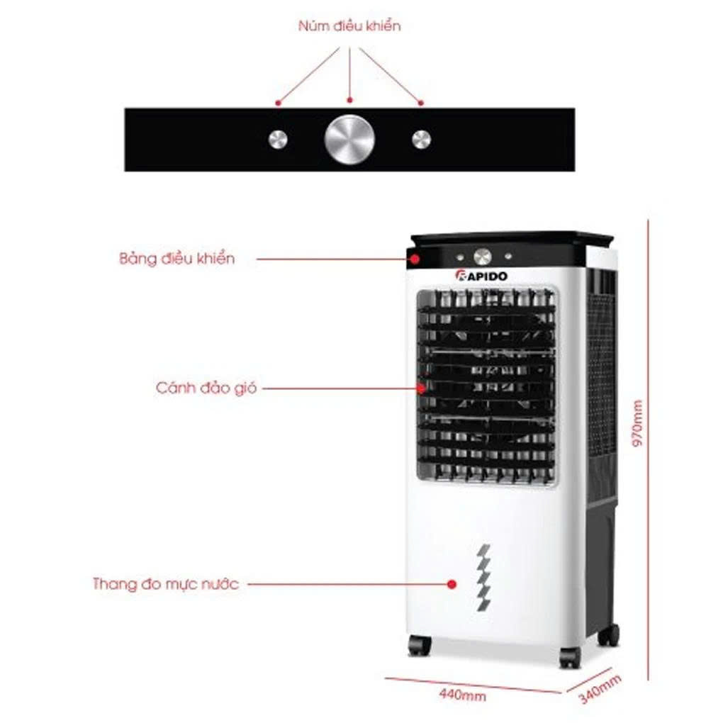 - Kích thước (Mm): (Dài) 440 x (Rộng) 340 x (Cao) 970
