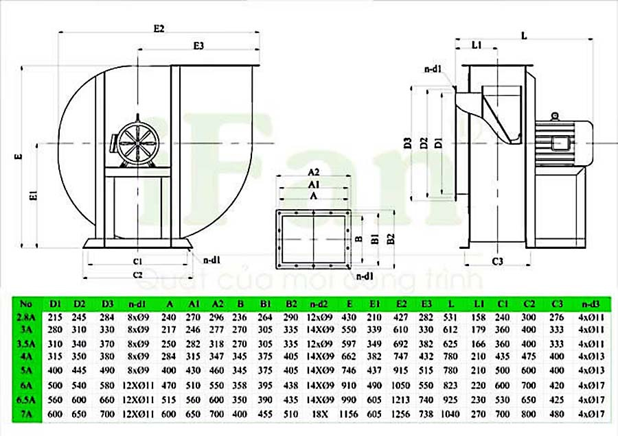 + Đặc điểm sản phẩm quạt ly tâm 11-62A