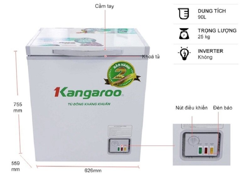 Lòng tủ được trang bị công nghệ Nano bạc giúp Tủ đông Kangaroo 90L KG168NC1 kháng khuẩn hiệu quả, loại bỏ vi khuẩn vượt trội và khử mùi hôi khó chịu, giúp thực phẩm bảo quản tươi ngon lâu hơn, giữ trọn dinh dưỡng sau thời gian dài tích trữ. Tủ đông kháng khuẩn 90 lít KG168NC1 được trang bị bảng điều khiển ngoài vô cùng tiện lợi. Giờ đây bạn có thể dễ dàng điều chỉnh nhiệt độ bên trong tủ bằng cách sử dụng nút xoay và công tắc bên ngoài tủ đông để thực phẩm được bảo quản trong điều kiện tốt nhất. Tùy theo nhu cầu và mục đích sử dụng thực phẩm mà bạn nên điều chỉnh nhiệt độ sao cho phù hợp. Tủ đông Kangaroo KG168NC1 sử dụng dàn lạnh bằng chất liệu đồng nguyên chất có độ bền cao, mang lại hiệu quả làm lạnh nhanh và sâu. KG168NC1 dùng khí gas R600a vừa giúp tiết kiệm điện, vừa thân thiện với môi trường, đảm bảo an toàn cho người sử dụng.
