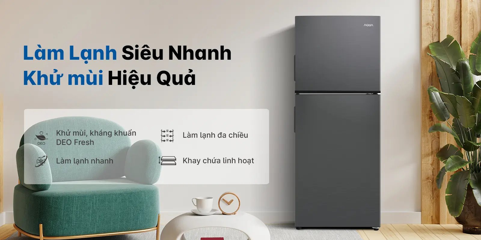 Tủ lạnh Aqua 189 lít AQR-T220NE Kháng khuẩn khử mùi DEO Fresh: Có khả năng giải phóng ra các ion bạc để ức chế sự hoạt động của vi khuẩn và nấm mốc, nhờ đó duy trì độ tươi ngon thực phẩm tốt hơn và giảm thiểu mùi hôi xuất hiện bên trong tủ lạnh.