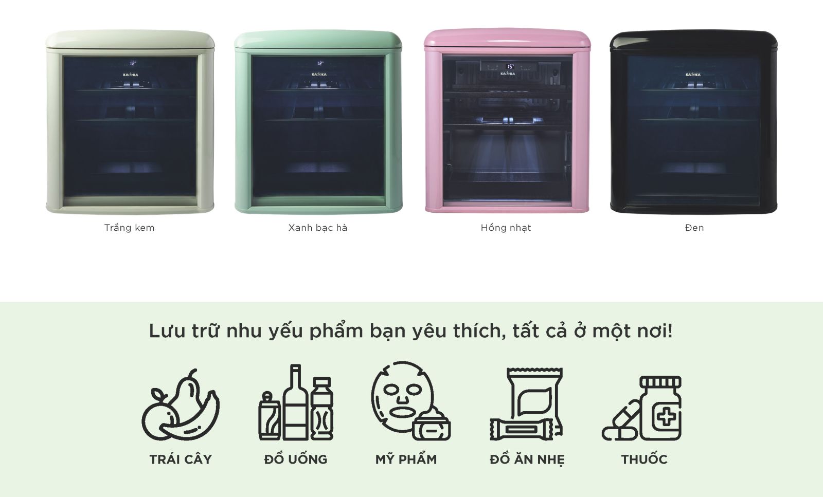 - Vỏ tủ màu: Đen, Trắng kem, Xanh bạc hà, Hồng nhạt.