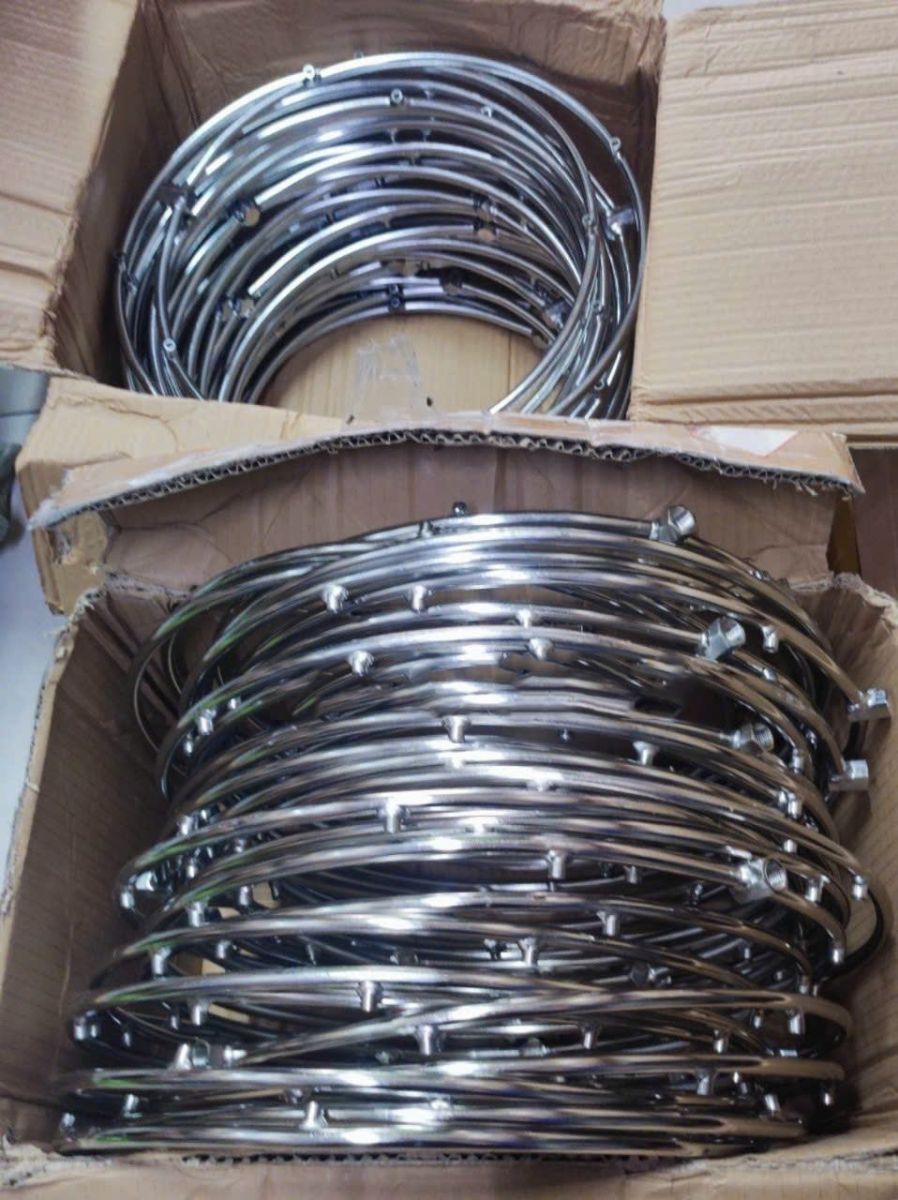 Vòng phun sương có 2 loai : loại 6 béc và 5 béc dùng để lắp vào quạt điện hoặc trang trí rất tiện lợi và dễ dàng, chỉ cần đấu vào ống của hệ thống phun sương và gắn lên quạt là có ngay 1 cây quạt phun sương hoạt động hiệu quả mà lại tiết kiệm chi phí